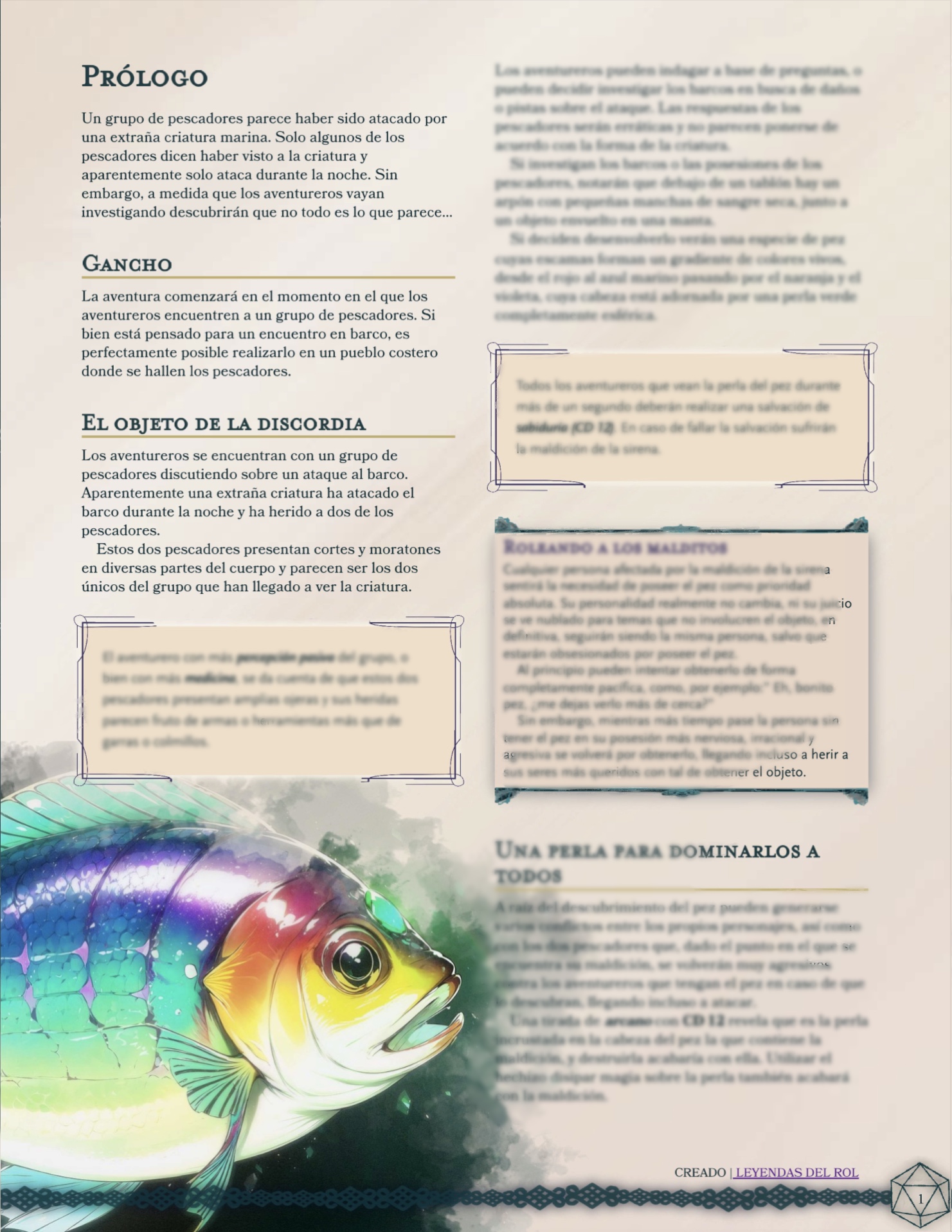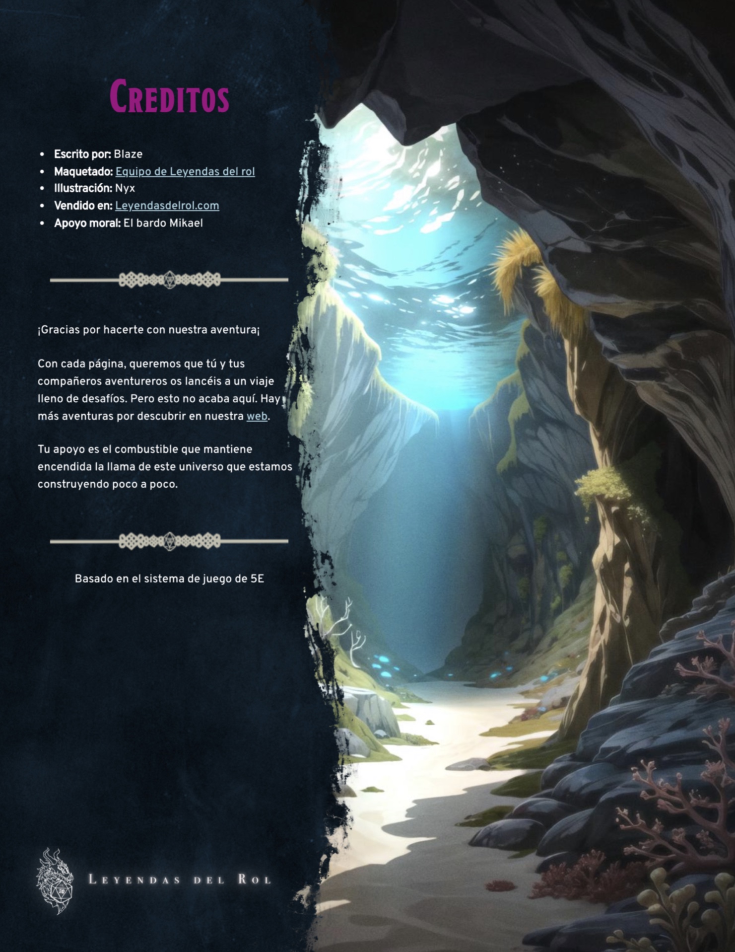 - 1 aventura totalmente original, creada por Leyendas del Rol, de nivel 1 basadas en el sistema de reglas de D&D 5e en español.